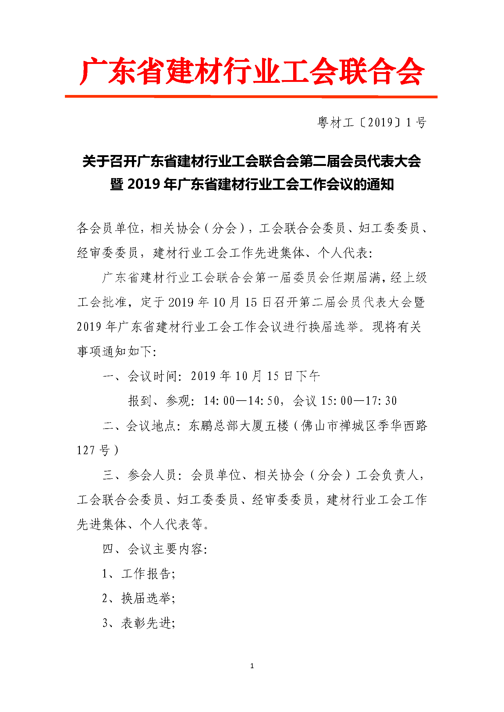 廣東省建材行業(yè)工會聯(lián)合會第一屆委員會任期屆滿,經(jīng)上級工會批準(zhǔn),定于2019年10月15日召開第二屆會員代表大會暨2019年廣東省建材行業(yè)工會工作會議進(jìn)行換屆選舉?,F(xiàn)將有關(guān)事項(xiàng)通知如下: